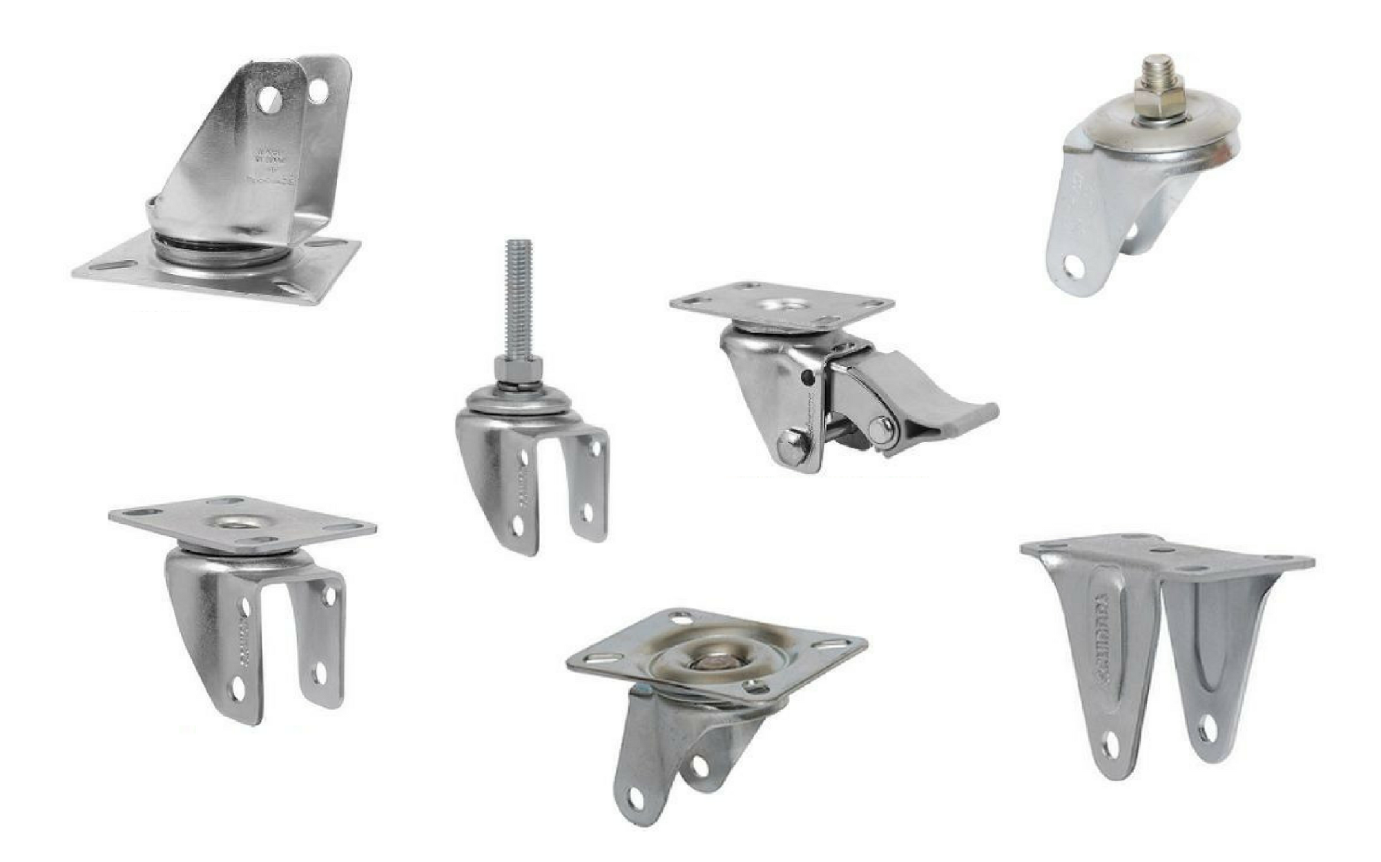 Galvanizados, fixos, giratórios, com freio ou bloqueio de giro
